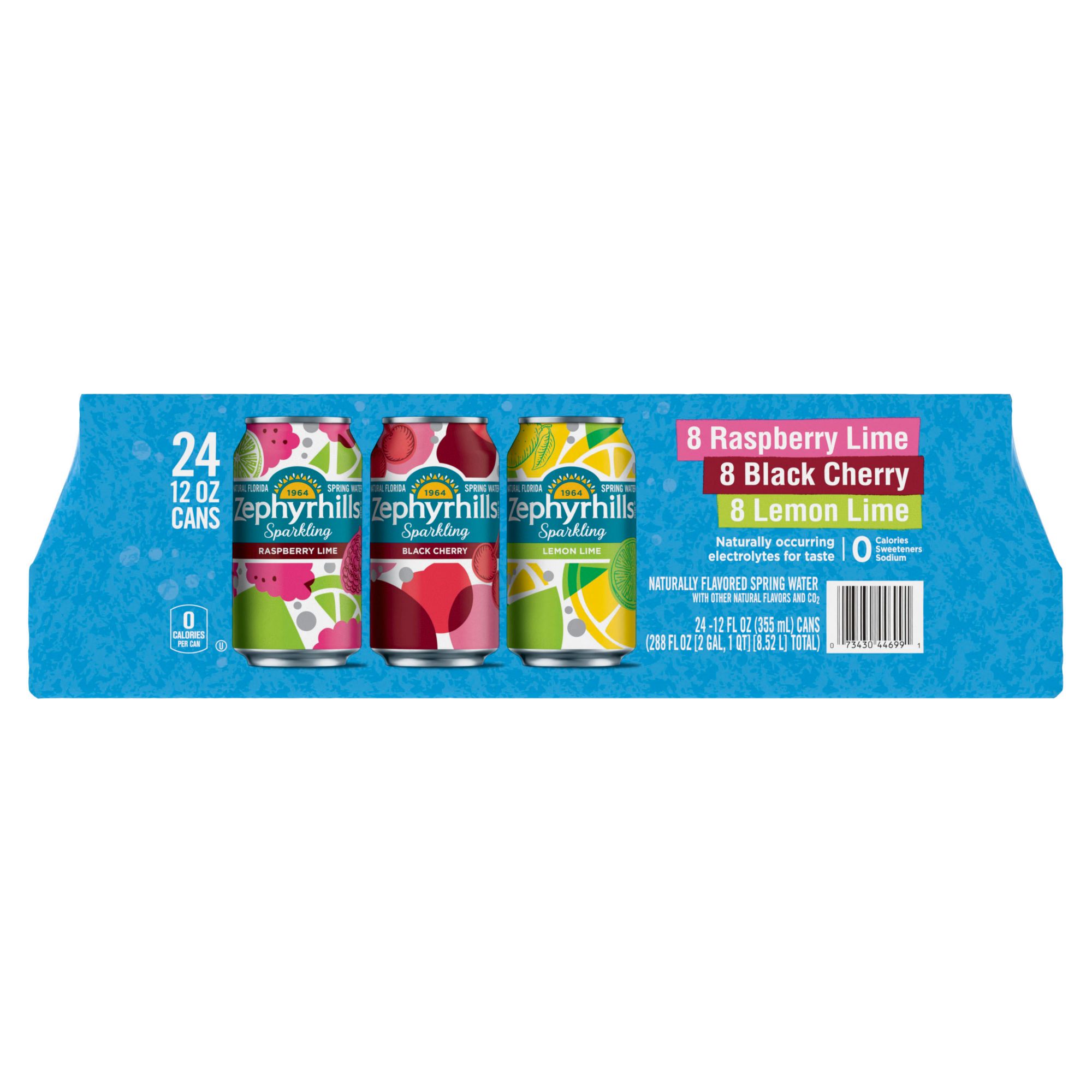 Zephyrhills Flavored Sparkling Water, 24 pk./12 oz. Item: 162564 Model: N/A. $7.99. Product Features: Made from 100% natural spring water. Naturally occurring minerals make for a unique, crisp, thirst-quenching taste. Sparkling (carbonated) Zero calories, zero sweeteners and zero artificial colors or flavors. 100% recyclable can. Includes 24 pack of 12-oz. cans.