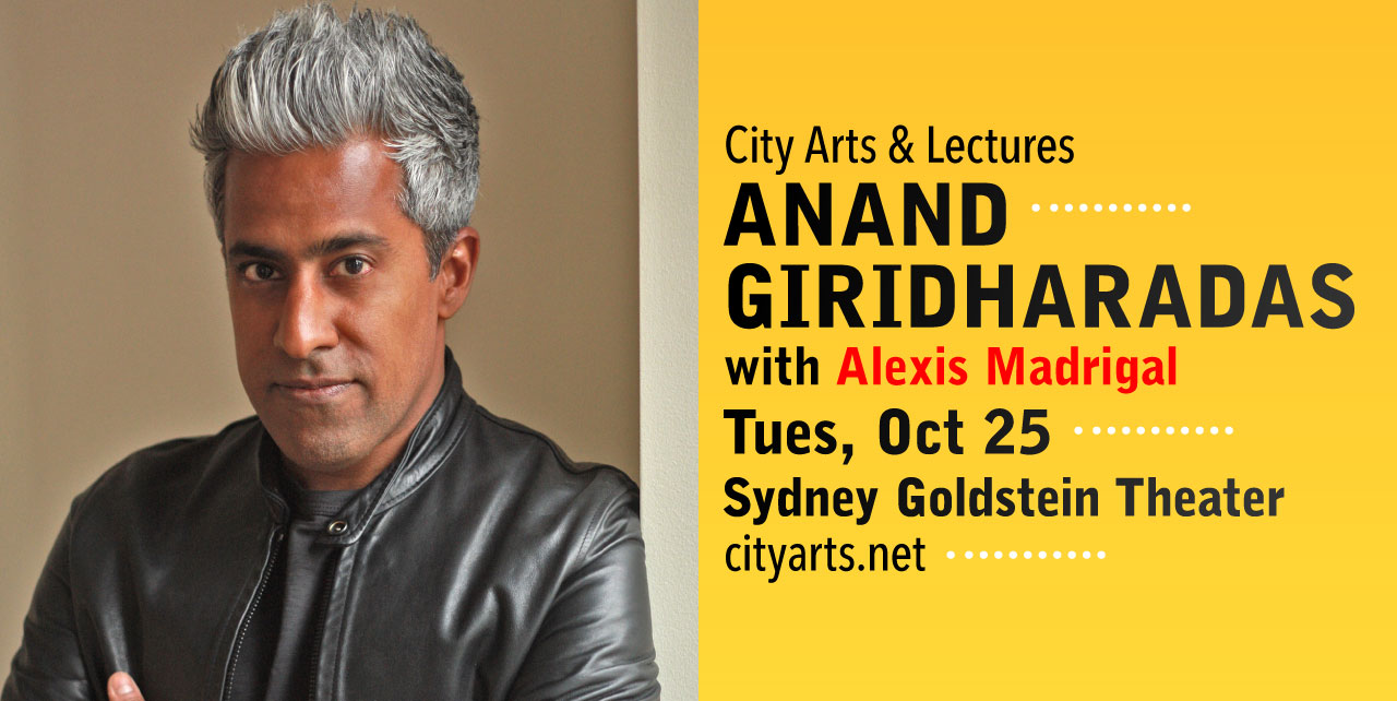 City Arts & Lectures | Live & on Public Radio Anand Giridharadas in conversation with Alexis Madrigal. Tue, Oct 25. Radio/Podcast.