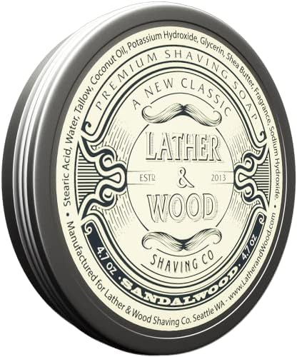 Lather & Wood Shaving Soap - Sandalwood - Simply the Best Luxury Shaving Cream - Tallow - Dense Lather with Fantastic Scent for the Worlds Best Wet ...