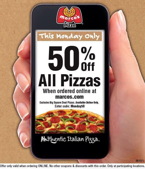 pizzaneed.com › pizza-deals9+ Best Online Pizza Deals Right NOW (Updated: September 2022) Here’s where you can find the best Marco’s Pizza deals online: MarcosPizza.com; RetailMeNot; Coupon Chief; Coupons.com; Marco’s Pizza is a pizza franchise founded in Toledo, Ohio and their slogan is Made the Italian Way. With over 800 locations as of 2017, they operate in 33 states, plus the Bahamas and Puerto Rico.